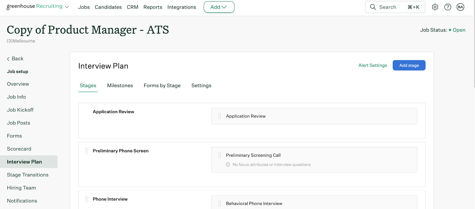- Select the "Job Setup", and then "Interview Plan" from the left-hand menu.