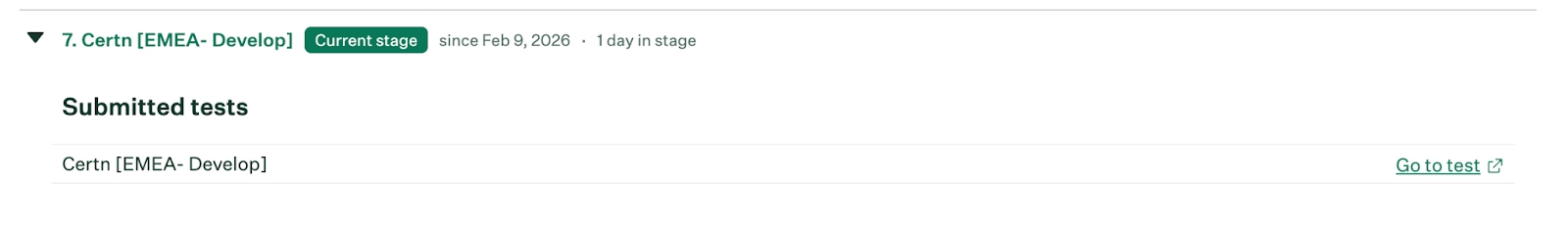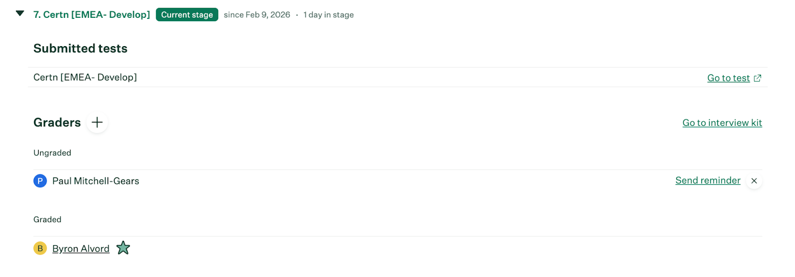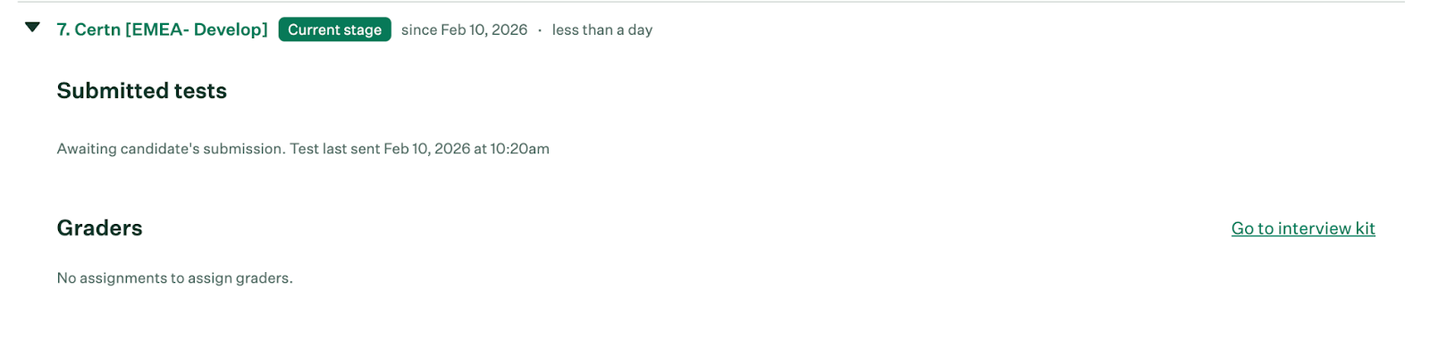 Once graded, this stage is marked complete and you can move forward in your hiring process.