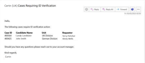 Email notifications will be sent when an ID verification is outstanding on a case.