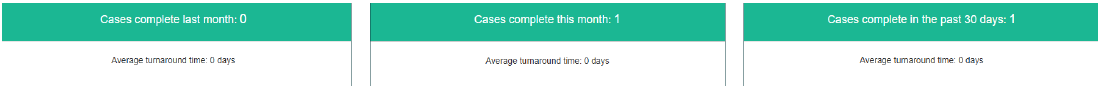5. The data boxes below show you the number of cases completed in the previous month, current month, and in the past 30 days. This area also shows the average case turnaround time for each period.