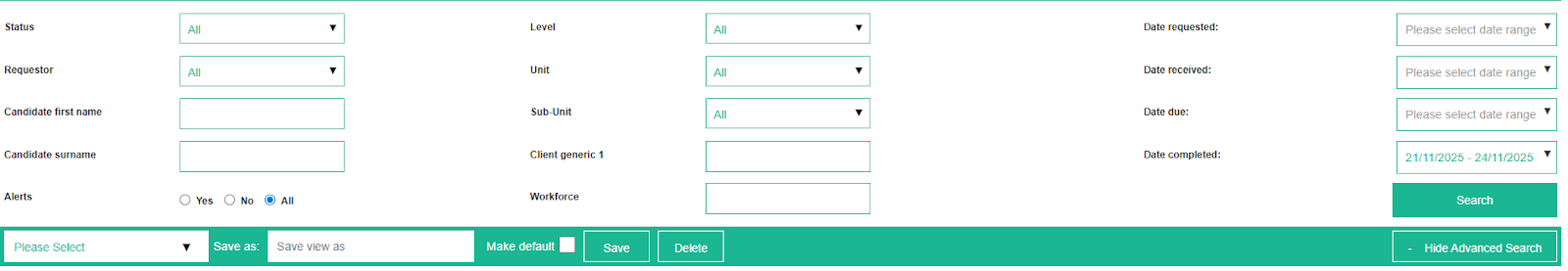 5. To make your search more specific (i.e.by searching for cost centre code or screening level), click the “show advanced search” button on the right-hand side of the screen.