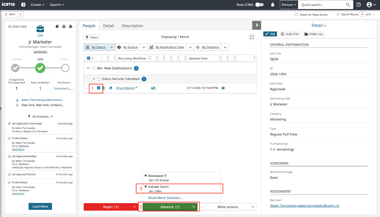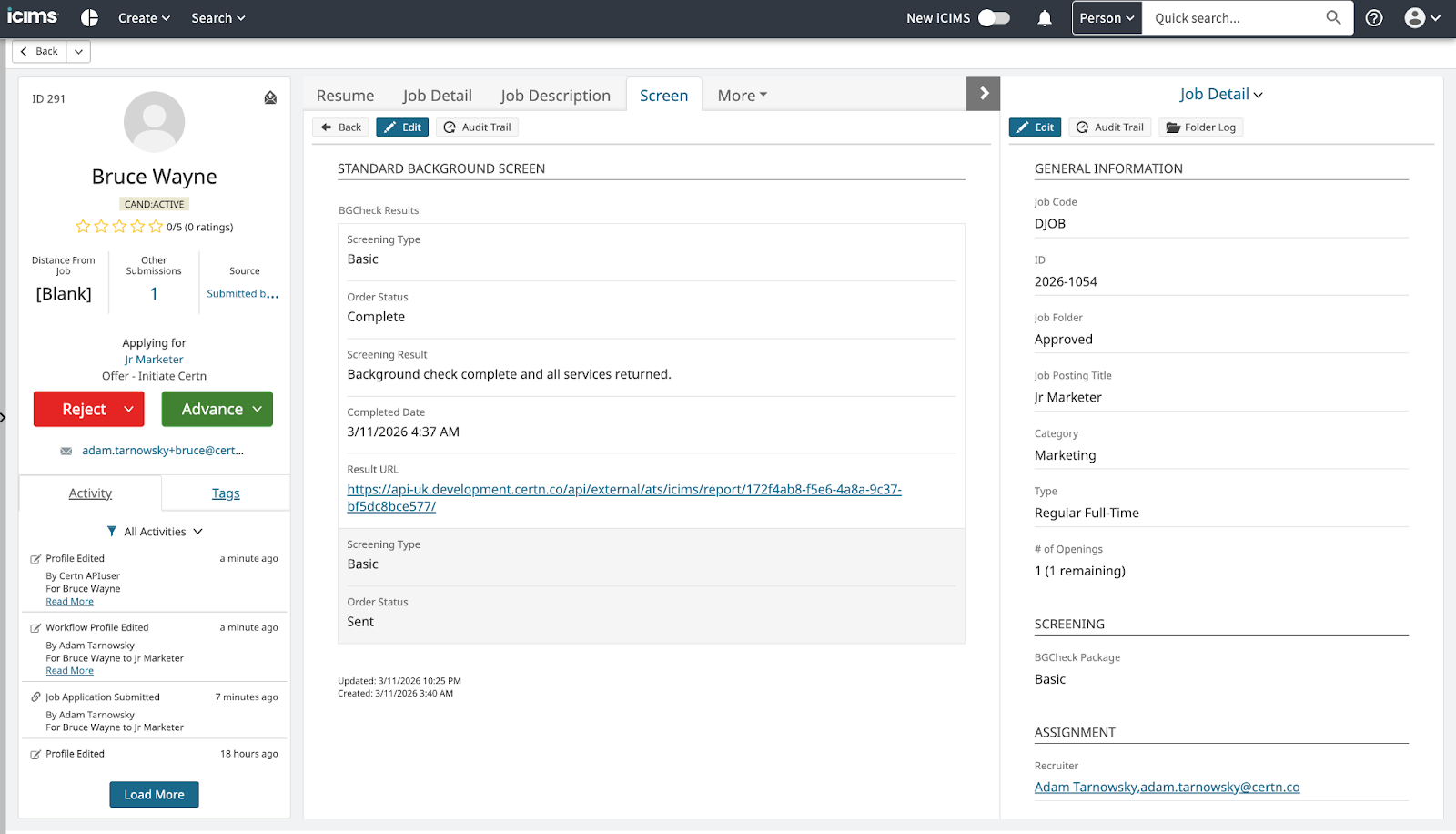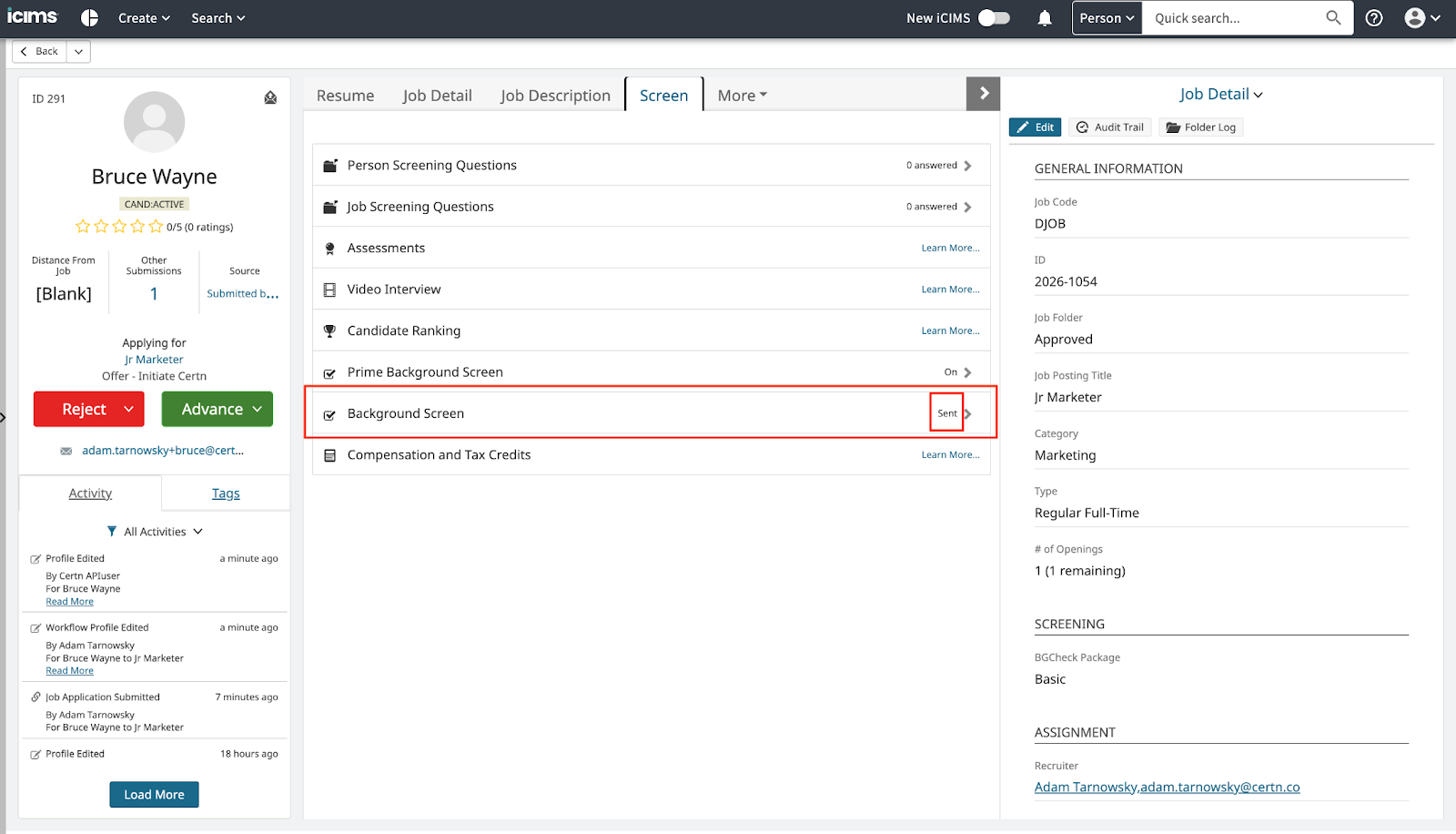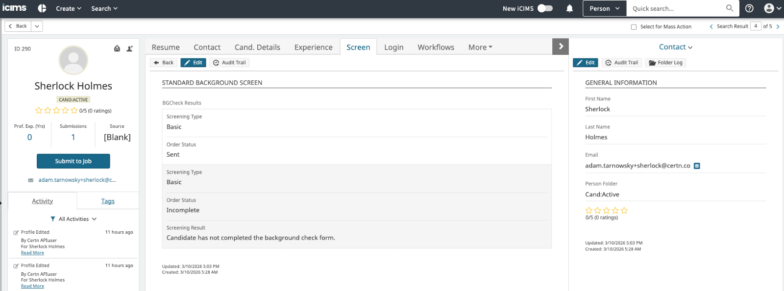 - Run a background check from within ICIMS